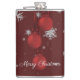 Profitez de vos boissons alcoolisées préférées cette saison de vacances avec un flacon rouge ornementé Vinyl Wrapped de Noël. La conception de flacon comporte un trio d'ornements de Noël suspendus avec des flocons de neige en chute et un arrière - plan rouge foncé. Autres cadeaux et objets de vacances disponibles avec ce design aussi.