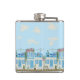 Flasques Santorini Blue White Greek Village Coastal Art