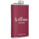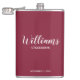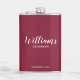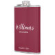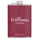 Script moderne Flacon de Groomsmen personnalisées avec nom de marionnettiste personnalisé en blanc style de police de script moderne avec titre et date mariage dans style de police sans serif moderne sur arrière - plan rouge bordeaux. Aussi parfait pour Père de la Mariée, Meilleur homme et plus.