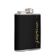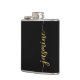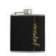 Flasque personnalisée minimaliste, féminine, simple, noire et dorée avec monogramme, nom, signature, écriture. Ces designs présentent votre prénom dans une jolie typographie de signature de style lettrage manuscrit avec fioritures sur fond noir et or. Ceux-ci sont faciles à personnaliser. Cadeau élégant et féminin pour enterrement de vie de jeune fille, cadeau de pendaison de crémaillère, également pour enterrement de vie de jeune fille, anniversaire, fête des mères, mariage, anniversaire des 16 ans, douche de mariée, pour la fête de fin d'études et c'est pour la fille qui aime les choses uniques et élégantes.