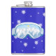 Ski Goggles with mountain reflection. Ski goggles and Snowflake Pattern on blue background. Playful sport winter design.