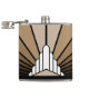 Un motif classique de style art déco. Un motif emblématique du soleil se levant derrière un bâtiment en forme d'art déco stylisé. Un design simple mais élégant, fidèle à l'époque.