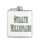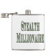 Texte vert "STEALTH MILLIONAIRE" dans une police ressemblant à celles trouvées sur la monnaie. On ne sait jamais qui pourrait être millionnaire. Ils ne vivent pas tous grands avec des vêtements tape-à-l'oeil, la voiture de luxe, ou une grande maison. Ils n'annoncent pas qu'ils sont bien lotis. Ce sont des millionnaires furtifs. Annoncez le fait et vous n'êtes pas vraiment un millionnaire furtif, mais si personne ne vous croit votre secret est en sécurité ; vous êtes peut-être caché à la vue de tous. Pour les millionnaires furtifs et ceux qui y travaillent.