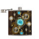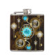 Turquoise lenses with antique watch with brass gears and golden keys on rusty, brown background. Steampunk style.
