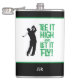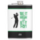 Citation de golfeur mignonne "Tee It High & Let it Fly !" La conception de flasque à boisson de 8 onces présente une police amusante de style milieu du siècle en vert kelley associée à une silhouette de golfeur masculin en noir. La couleur de la citation et du golfeur est personnalisable. Personnalisez avec des initiales monogrammées, un nom ou un court texte à l'aide du modèle simple à utiliser. La couleur ou le style de police des initiales peut également être personnalisé. La typographie et le golfeur sont des conceptions graphiques vectorielles et peuvent être facilement transférés vers d'autres produits Zazzle, grands ou petits, et conserveront leur clarté sans pixellisation. Envoyez un message avec des demandes de couleur personnalisée ou des questions. Également disponible dans une flasque à boisson de 6 onces dans cette liste :