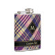 Design écossais violet, jaune doré et bleu. Motif sans couture. Texte et monogramme personnalisés.