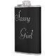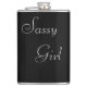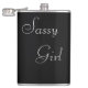 Un élégant flacon de hanche en acier inoxydable pour les jeunes femmes.Simpliste avec arrière - plan noir et blanc texte dit "Sassy Girl" Un grand cadeau de demoiselles d'honneur, pour vous-même ou pour toute occasion spéciale.