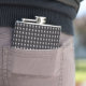 Un motif en acier clouté que vous pourriez trouver sur une ceinture ou un accessoire de mode. Ceci couvre de tuiles sans problème comme motif dans n'importe quelle direction. © et ® Bigstock® - tous droits réservés.