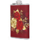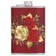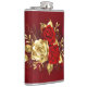 La composition de deux roses rouges artistiquement peintes et d'un rose doré, décoré d'or, feuilles de bijoux sur arrière - plan texturé.