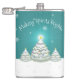 Profitez de votre boisson préférée pour adultes avec cette Turquoise flacon d'arbre de Noël enneigé. Le design flacon comporte un trio d'arbres décorés de Noël dans la neige avec des flocons de neige tombant contre un arrière - plan turquoise et le dicton "Faire briller les esprits" que vous pouvez laisser ou personnaliser avec votre propre dicton. Autres cadeaux et objets de vacances disponibles avec ce design aussi.