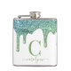 Parties scintillant turquoise Verte Aqua Sparkle Drips on Black Monogram Flask avec votre monogramme et votre nom avec notre parties scintillant fausse ombre branchée goutte à goutte dans les tons vert sirène et aqua lumineux sur un arrière - plan blanc chic. Le luxe est à portée de main, alors montrez-le ! Parfait pour l'esthétique de votre parties scintillant ! Si vous avez besoin d'aide ou d'articles correspondants, veuillez nous contacter à cedarandstring@gmail.com