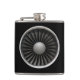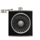 Vue frontale d'un moteur à turbine moderne montrant les pales de ventilateur et le capot brillant du moteur en argent. Les moteurs Turbofan sont couramment utilisés sur les avions de ligne commerciaux pour leur haute poussée et leur efficacité en carburant, ainsi que pour le bruit plus faible que les moteurs turbojet.