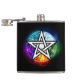 Artistically drawn, luminous pentagram with five magical elements, water, earth, fire, astral, air on black background. Wiccan pentagram. Wicca