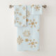 Serviette de bain avec un festin vacances répétition motif de flocons de neige en or chic dessiné avec d'élégantes formes de cristal. Un arrière - plan bleu clair glacé.