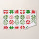 Il a un design de Noël de différents flocons de neige en rouge et vert en rangs.