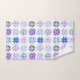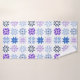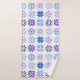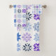 Cette serviette a un design hivernal de différents flocons de neige en bleu et violet en rangs.
