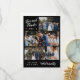 Carte de remerciements mariage double face avec un côté imprimé avec un collage propre de quatre de vos photos mariages et l'amour et merci dans un script charmant au-dessus des flèches dessinées main pointant sur un coeur rose contre un arrière - plan noir. L'autre côté dispose d'une carte de remerciement doublée où vous pouvez écrire un remerciement à la main.