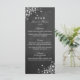 Ces élégantes touches blanches sur les cartes de menu mariage de tableau noir sont parfaites pour tout couple qui planifie un mariage romantique et chic. Ces cartes de menu peuvent être personnalisées pour votre occasion spéciale et rendraient l'accessoire parfait pour tout mariage, douche nuptiale, fête de fiançailles, fête d'anniversaire et bien plus encore.