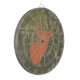 Un panneau de dard comportant une illustration d'un cerf commun orange au-dessus d'un camo de chasse a inspiré l'arrière - plan.