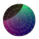 Cette magnifique carte de fléchettes présente une image numériquement créée qui ressemble au croissant d'une planète sombre entourée d'une aurore cosmique de vert, bleu, violet et rose.