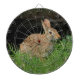 Une photo d'un lapin lapin du Kansas tiré un closeup qui est lumineux et coloré dans l'herbe verte et manger des mauvaises herbes. C'est sur une Cible de flechettes ProfileInk.