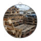 Une photographie des palettes en bois a empilé la haute sur un mur de port à la ville côtière de Whitby, Angleterre est du nord