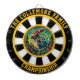 Art circulaire présentant une orignale aux bois impressionnants dans une forêt encadrée d'une cible.