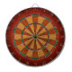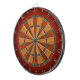 Une conception belle de cible. L'arrière - plan est profondément orange-foncé, se fanant encore à plus sombre vers le bord, avec porté, souillés et rayés des regards. Les lits de la cible sont bien définis. Les segments plus légers sont une version plus légère de l'arrière - plan. Les doubles et les anneaux de triples sont plus ou moins dans les couleurs traditionnelles, adaptées pour adapter la conception.