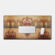 Une élégante frise fleurie d'un papier peint victorien, vintage et Art nouveau. Une fleur abstraite rouge est entourée d'un design orné et posée sur un arrière - plan fin plaid. Fait en rouge, vert, or et marron.
