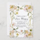 fleur beige avec cadre or invitation au baptême