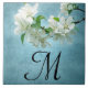 Fleur blanche Deep Blue Sky Floral Country Monogramme initial Carreau décoratif Personnalisé