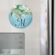Fleur blanche Profonde Bleu Ciel Floral Pays Monogramme initial Aimant de cuisine Personnalisé