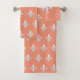 Serviette sertie dans une fleur de lis classique (fleur de lis) motif en blanc sur un corail clair rose / pêche arrière - plan