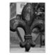 La carte de voeux Fleur de lis en fer forgé unique présente une photo en noir et blanc d'une fleur de lis en fer forgé patinée ornée que l'on peut trouver à Natchitoches, en Louisiane, le long de la rivière Cane.