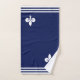 Elégant blanc Fleur-de-Lis sur bleu marine avec rayures Serviettes de bain Set. Fleur-de-Lis est synonyme de pourcentage, de vertu et d'harmonie. L'image peut être customisée.