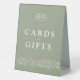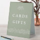 Cartes et table-cadeau signer en vert et blanc sauge pour votre table-cadeau afin que les invités sachent où placer vos cartes et cadeaux. Personnalisez avec vos propres mots (ou utilisez le nôtre) et ajoutez vos propres initiales monographiques dans les motifs stylisés de fleur de lis en haut. D'autres articles sont disponibles. Fleur de lis et fleurs, vignes et papillons, art et design dessiné à la main par Sarah Trett pour www.mylittleedenweddings.com