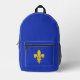 Une belle fleur de Lis sur un sac à dos bleu royal : un symbole de pourcentage et un charme de chance. Un beau cadeau pour un homme royal !