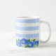 Fleur de naissance et Gem Stripe Mug Septembre La Fleur du mois et la Pierre de naissance pour Septembre sur une tasse rayée. La paire de fleurs et de pierres précieuses pour septembre est la Morning Glory et le Sapphire. La tasse a le sens de la fleur du mois et de la pierre de naissance. Ajouter un monogramme facultatif - ou supprimer complètement ce détail.