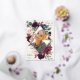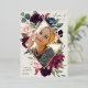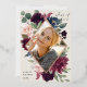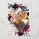 Élégant faire-part de graduation de photo florale présente une photo verticale dans un cadre en forme de diamant de fleurs d'aquarelle et de feuillage dans des tons riches de rose rose poussiéreux, de prune bordeaux violet, de vert sauge, et de bleu foncé poussiéreux avec garniture rose en feuille d'or. Personnalisez avec le nom de votre diplômé, l'année de classe et l'école. Ajoutez un message personnel à l'arrière, ainsi qu'une photo supplémentaire.