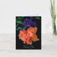 Ces cartes de notes dramatiques présentent un gros plan d'une fleur d'Hibiscus orange vif et de fleurs violettes et de feuilles vertes. Cette floraison tropicale vibrante est affichée sur un fond noir, ajoutant à sa beauté saisissante. Ces cartes de notes de photographie botanique élégantes peuvent être utilisées pour des notes de remerciement ou le texte "Merci" en façade peut être facilement modifié ou supprimé. Les cartes sont vierges à l'intérieur, mais votre texte peut y être ajouté.