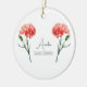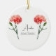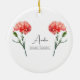La fleur du mois de la naissance Janvier ornement de l'oeillet présente une belle illustration d'une fleur de l'oeillet. Sous la fleur, il y a un nom personnalisable écrit dans une police de script élégante. Sous le nom, il dit "Janvier - Carnation", indiquant que sa fleur de naissance est la carnation. C'est un joli ornement personnalisé, un cadeau réfléchi pour quelqu'un né en janvier.