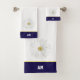 Belle fleur marguerite et monogramme sur le set de serviettes de bain bleu marine et blanc. Elégant design simple pour les célibataires et les couples !