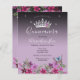 Belles étoiles faux brillantes sur la bordure supérieure. Design élégant et tendance avec typographie de script sophistiquée. Tout le texte est ajustable et facile à changer pour vos besoins de partie. Grand design élégant Quinceañera. Disponible en différentes couleurs. Belle tiara princesse avec arrangement floral. Papillon bleu avec au fond la bordure florale. Différentes couleurs arrière - plans disponibles.