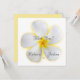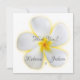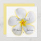 Un ensemble de faire-part de mariage unique avec une photo de fond d'une fleur de Plumeria blanche avec une lueur jaune derrière. Un symbole hawaïen de "positivité" et de "nouveaux débuts". A Hawaï, cette fleur est utilisée pour fabriquer des colliers de lei en raison de leur forme et de leur parfum sucré.