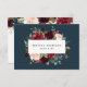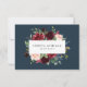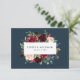 Carte cadeau chic affiche deux lignes texte personnalisé (avec votre nom d'entreprise et votre spécialité) encadré de fleurs d'aquarelle vibrantes dans les tons de bijoux de marsala bordeaux, bleu marine et rose roux. Ajoutez le libellé de votre certificat cadeau et les coordonnées de votre entreprise sur le côté opposé, surmonté d'une bordure florale correspondante. Un choix moderne et élégant pour les boutiques, salons, maquilleurs, coiffeurs ou tout commerce.