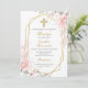 Fleur rose Baptême invitation fille en espagnol, invitación de bautizo para niña