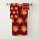 Motif sans couture de la fleur Rose Moss avec pétales rouges et pistil jaune et étamines imprimés sur le set de serviettes de bain. Linge de toilette à motifs floraux, serviette et serviette de bain pour les amateurs de fleurs et pour ajouter la beauté de la nature à vos effets personnels.