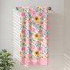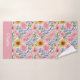 Ce design de serviette de bain à fleurs est complet avec un motif transparent de fleurs roses, de fleurs bleues et de tournesols sur un fond blanc ainsi qu'un espace pour ajouter votre nom.