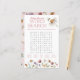 Vous recherchez un baby shower à thème fleur sauvage ? Ne cherchez plus ! Ce jeu de recherche de mots fleurs sauvages est l'activité parfaite pour divertir vos invités. Ce thème est composé de fleurs de jardin d'aquarelles rustiques et de verdure. Personnalisez tout le texte afin de répondre à votre événement. Cette collection contient des invitations, des cartes de remerciement, des insertions, des jeux et des décorations pour tous vos besoins d'événements! Pour modifier avec vos détails d'événement, cliquez sur "Personnaliser" ou "Détails", puis supprimez le texte prérempli et remplacez-le par le vôtre. N'hésitez pas à nous contacter si vous avez des questions.