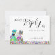 Carte de réponse du mariage à thème Boho fleur sauvage coloré Dinosaur . Doté d'une mariée et d'un marié psychédélique et amusant dans une prairie de fleurs sauvages boho préhistoriques, cette carte apporte une sensation unique et fantaisiste à votre journée spéciale. La typographie moderne de style calligraphie est à la fois amusante et facile à personnaliser, ce qui la rend simple à correspondre à votre style mariage. Conçu par la talentueuse Catherine Sweetman, l'aquarelle présente un charmant mélange de fleurs d'été et d'amour d'inspiration dino. Parfait pour votre réception de mariage ou votre dîner de répétition, ce RSVP fait partie d’une suite mariage complète qui comprend tout ce dont vous aurez besoin pour rendre votre voyage mariage aussi mémorable que votre histoire d’amour.